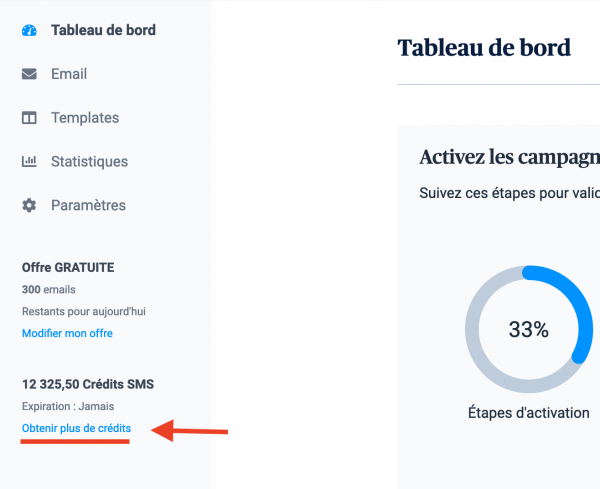 Cliquer ensuite dans le menu de gauche sur le dernier lien en bas Obtenir plus de crédits
