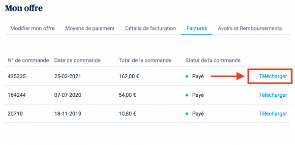Cliquer enfin sur le lien Télécharger en face de la facture souhaitée.