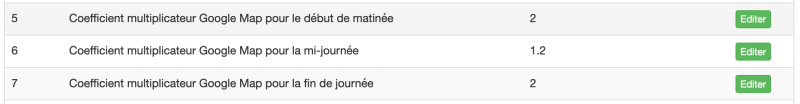 Modifier les coefficients multiplicateur Google Map et les plages horaire
